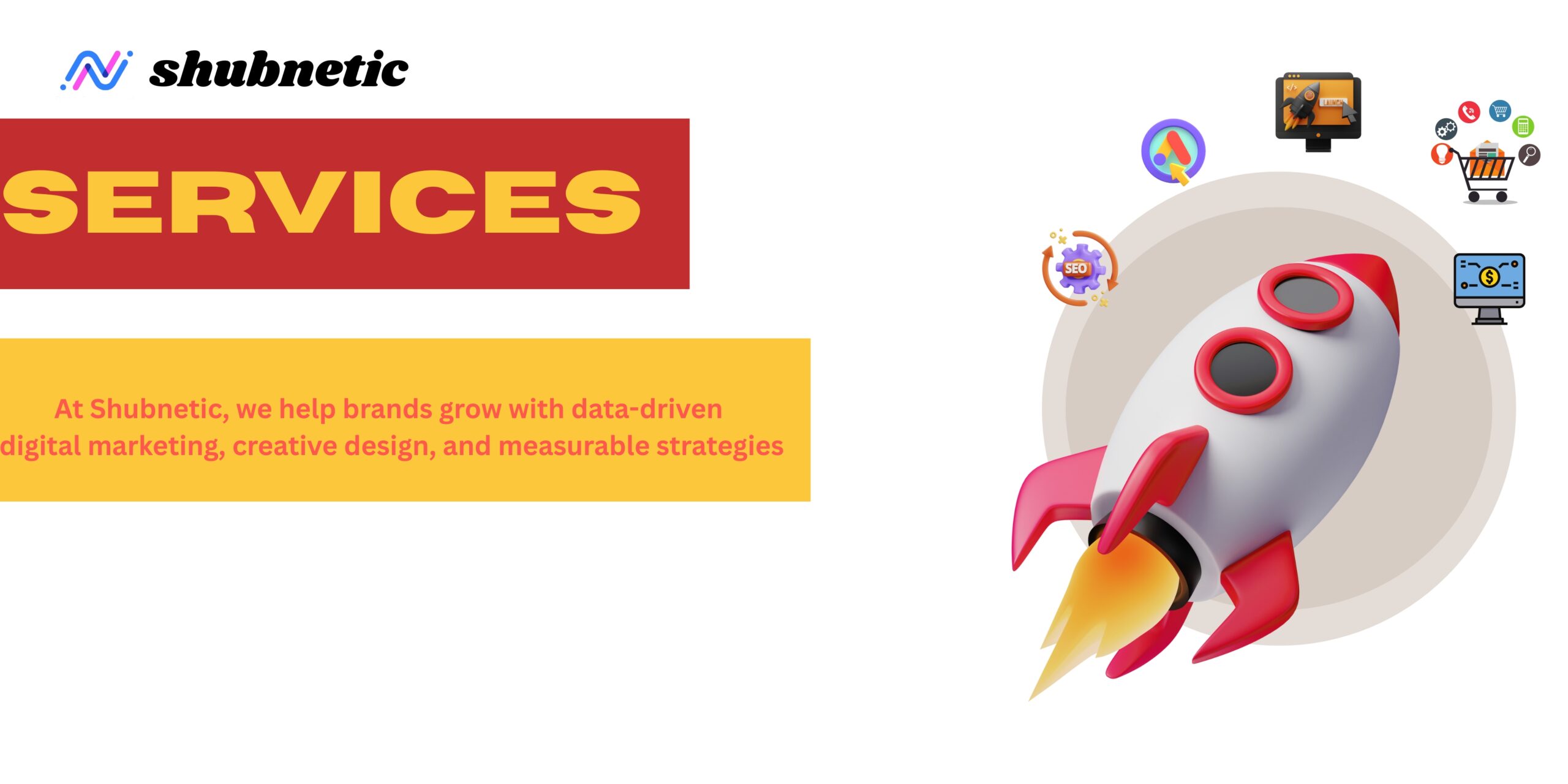 At Shubnetic, we help brands grow with data-driven digital marketing, creative design, and measurable strategies. Whether youβre a local business or a fast-scaling startup, our services are built to increase visibility, generate leads, and turn traffic into customers. Below youβll find our core offerings and what we deliver for each.